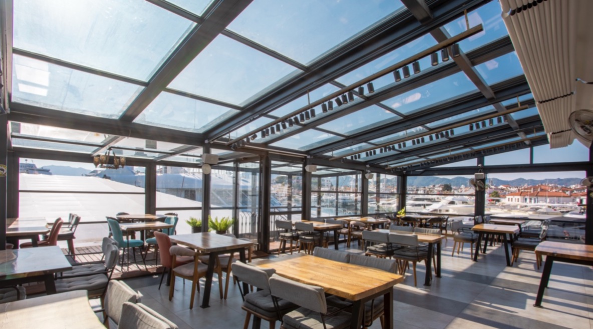 Elektrische Balkongeländer mit Wintergartenfunktion.